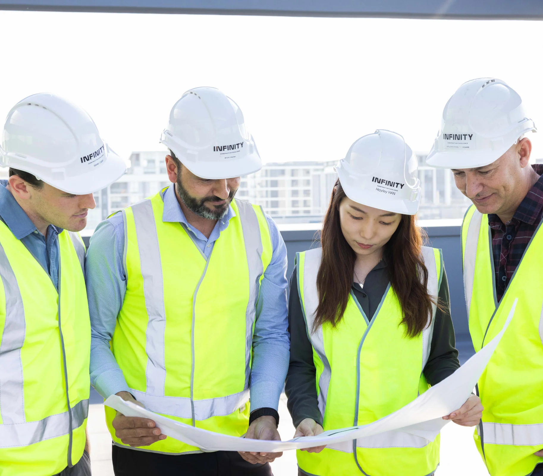 Leadership team at Infinity Constructions showcasing decades of experience in Tier 2 commercial building projects